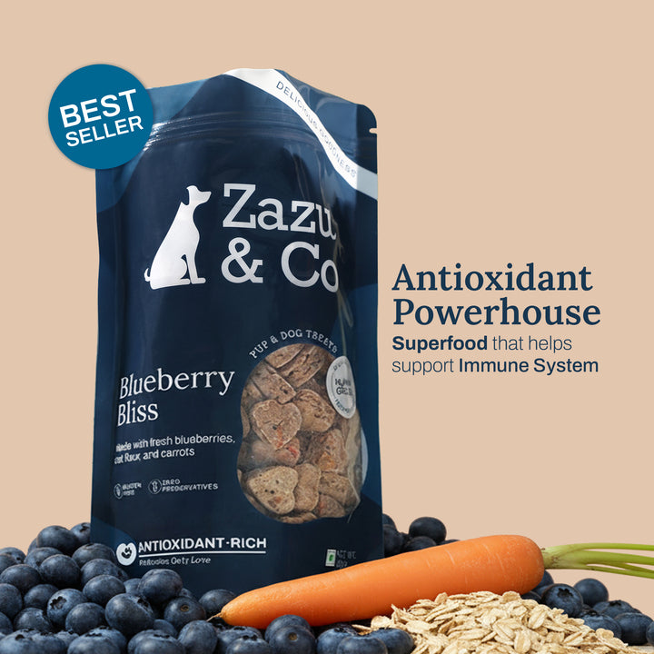 Bursting with antioxidant-rich blueberries these gently slow-baked biscuits are a delicious way to support your pupās brain health and immune system.Ā