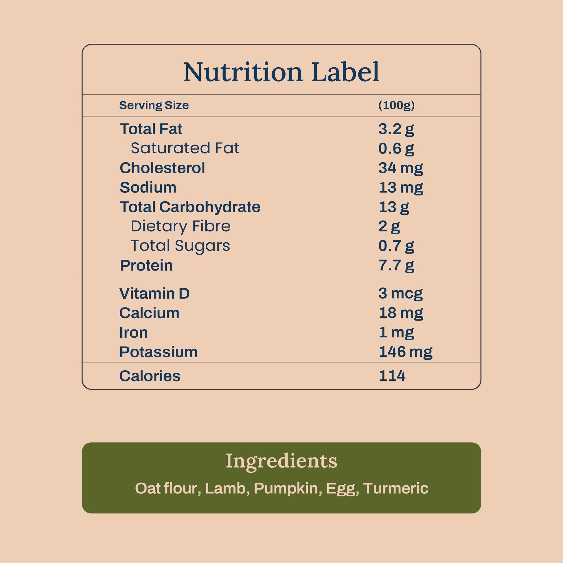 Made with fresh lamb and fiber-rich pumpkin, these slow-baked treats are crafted to support digestion, skin health, and immune strength.Â