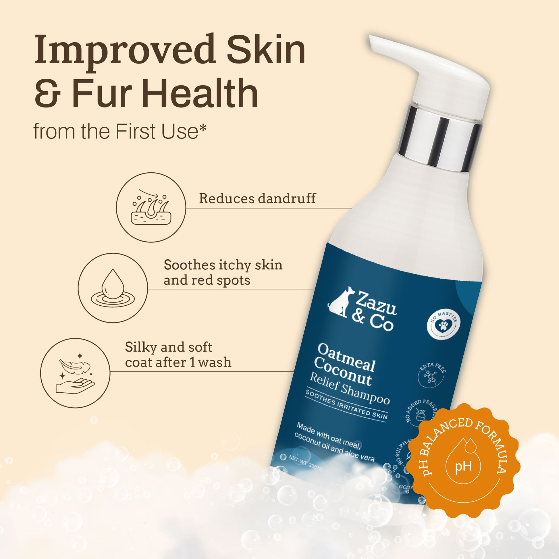 Infused with powerful natural ingredients like oatmeal, coconut oil, and aloe vera, this shampoo transforms bath time into a soothing, spa-like experience your pup will love.